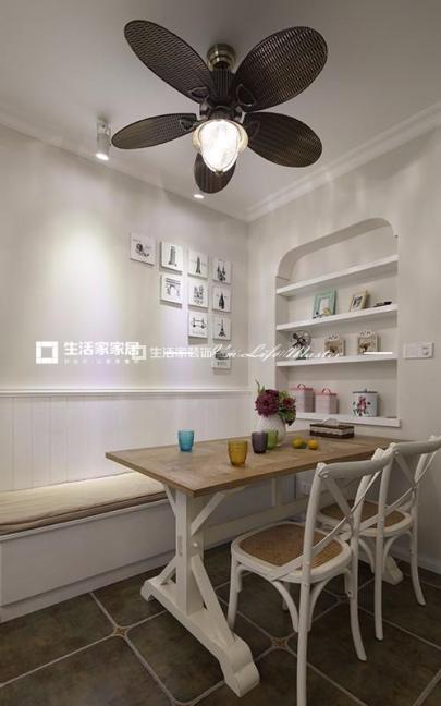 餐厅采用了美式乡村风中多见的卡座设计,即使就餐人数多一点同样也能容纳。壁龛式的餐厅背景墙,边角采用了圆润的设计,即实用又极富有装饰性。