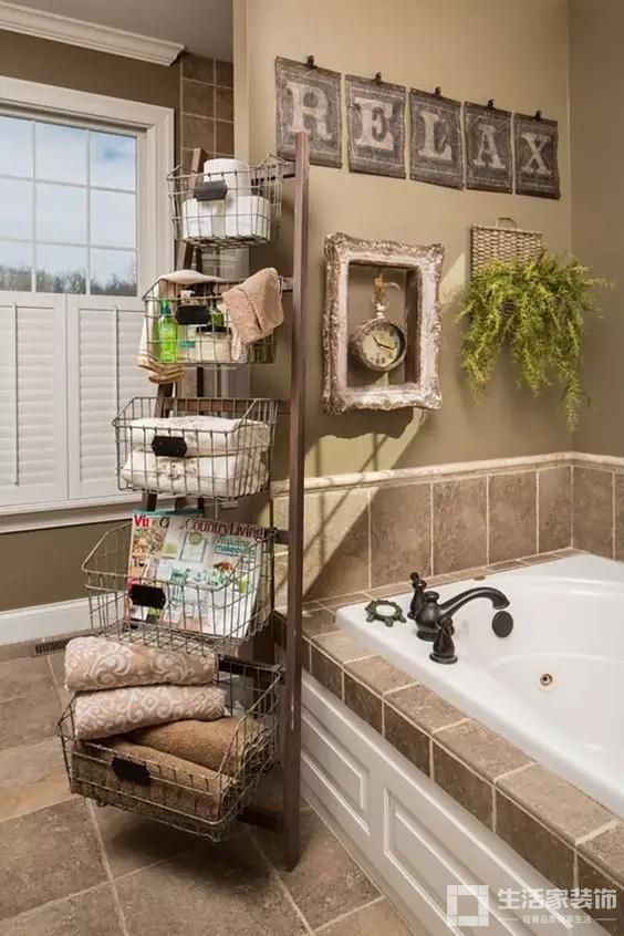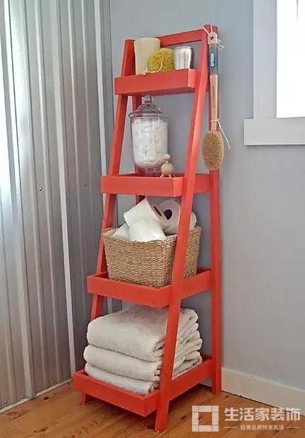 废旧的梯子还能干什么?用在浴室一点都不浪费,随意改造一下,就可以用来挂各类置物篮,放在马桶上方刚刚好呢。