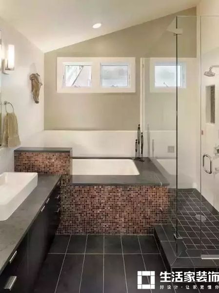 ▲方正的小卫生间,可以压缩一点淋浴区,做出一个泡澡的区域,洗孩子洗宠物都搞定了。
