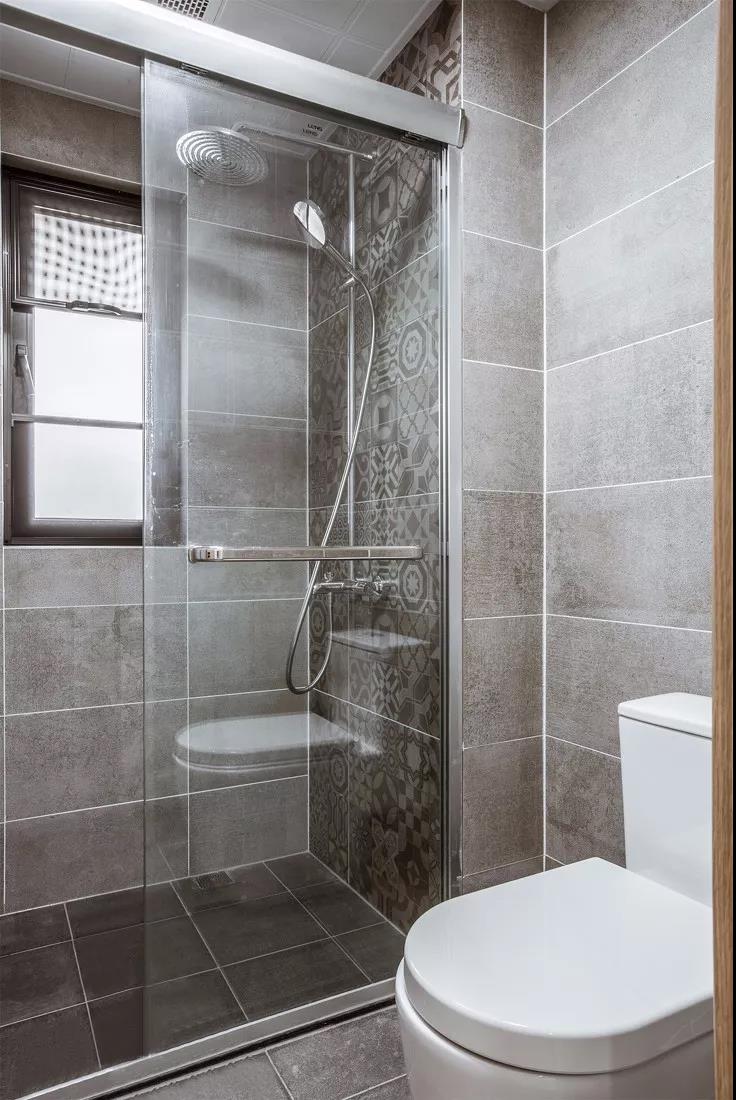 小巧的次卧用优雅的灰色做点缀,与暖色原木形成对比。考虑到实用性,设计师选择了这种带风扇的吊灯,满足屋主的生活需求。