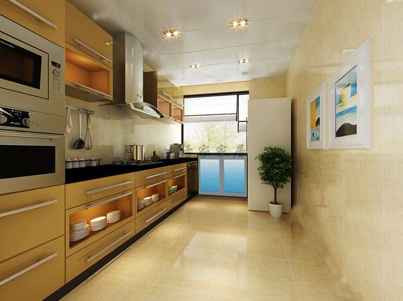 开放式厨房在格调上包括选材、颜色、元素、风格等方面保持与家居整个环境的统一性。