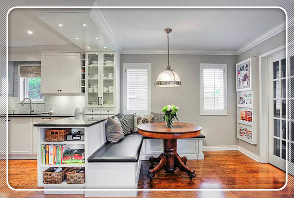一个U型卡座,更有效利用了角落空间,既是餐厅,也是休闲区,文艺青年的最爱~