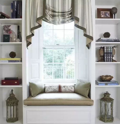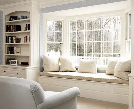 这种飘窗相对来讲比较常见,看书发呆什么超有feel,家里有客人来也可以在此落座,绝对是一件让你的朋友为之羡慕的事。