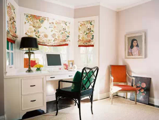 如果窗户底部没有墙体,面积又比较窄,保留原始形态的话有点浪费,所以就在底部设计收纳柜,再铺上彩色的小垫子,搭配小碎花的窗帘,就变成了一个充满浪漫氛围的小角落。
