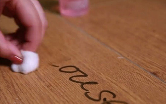 用拧干的抹布擦拭表面的卸甲水/风油精。