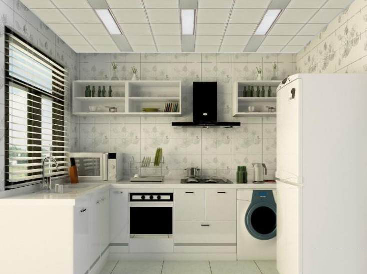 厨房的吊顶一定要采用防水的铝扣板安装这样可以避免吊顶变的潮湿。厨房中尽量不要有夹缝。将吊柜直接接到天花板,因天花容易凝聚水蒸气或油烟。吊顶最好不要太高,也不要太低,太低容易脏,太高不容易打扫。