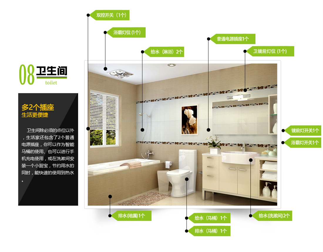■ 生活家水电改造点位配置套二68个+天棚不限